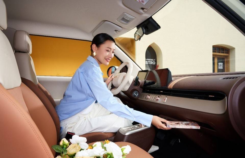 外觀之上,寶藏版延續(xù)了Lumin家族圓潤靈動的造型語言,前臉線條簡約流暢,融入鐳雕透鏡大燈與懸浮式車頂設(shè)計(jì),都市感與時尚度并存。內(nèi)飾部分,提供鎏金棕與水墨色兩種配色方案,并以玫瑰金飾條、荔枝紋中控臺、包裹式座椅等細(xì)節(jié)營造出輕奢氛圍。更大面積前擋玻璃與可調(diào)遮陽板化妝鏡,讓駕駛視野更開闊,也兼顧日常精致感。它不只是代步工具,更像一件能彰顯生活品味的“都市單品”。