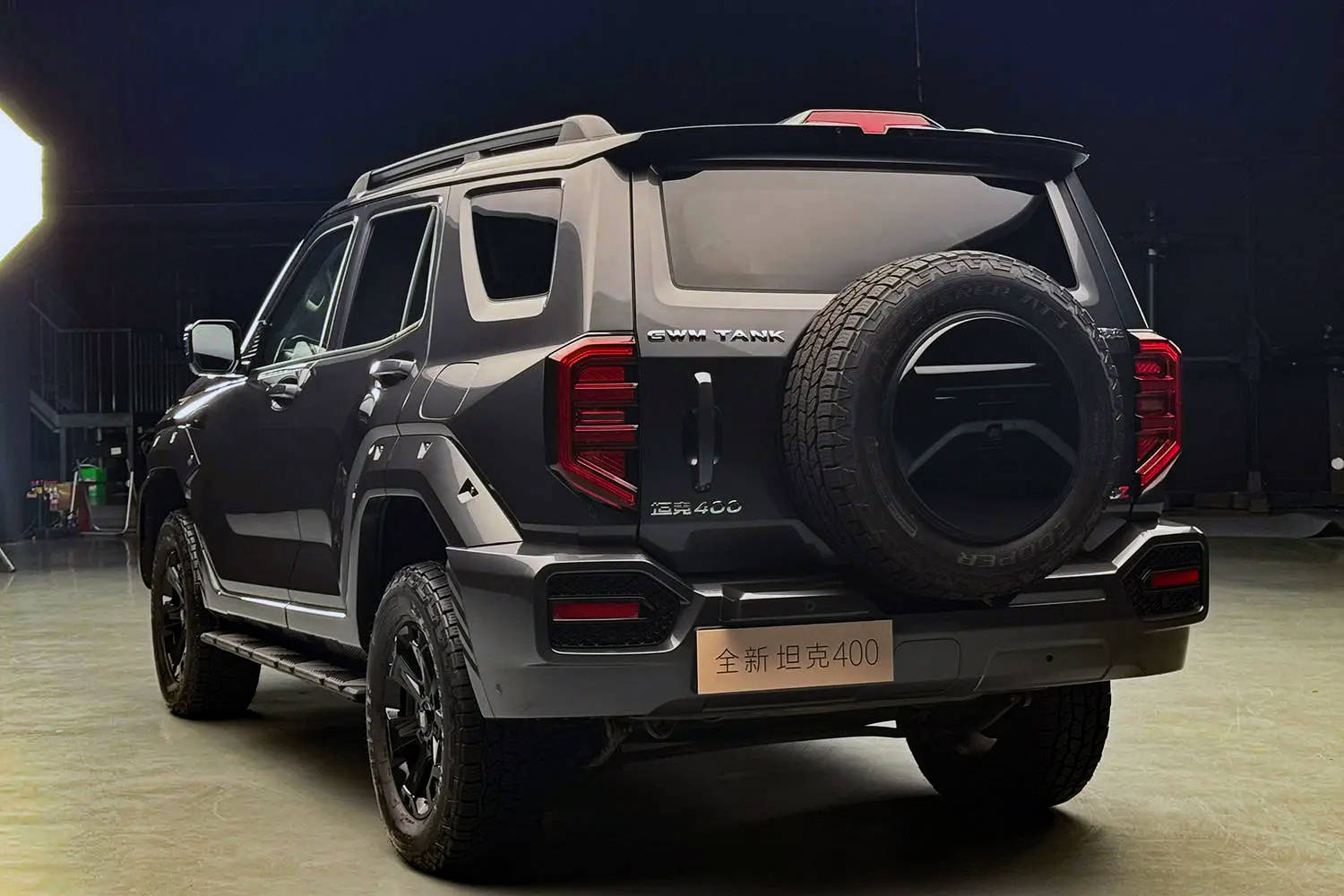 尾部方面,方正的車身搭配外擴的輪眉以及外掛式備胎,視覺效果十分粗獷。同時,橫開式尾門以及左側的豎置門把手配合多邊形尾燈組,有著不錯的越野氣息。值得一提的是,新款坦克400尾部增加了輔助駕駛小藍燈,增加輔助駕駛開啟時提示功能。