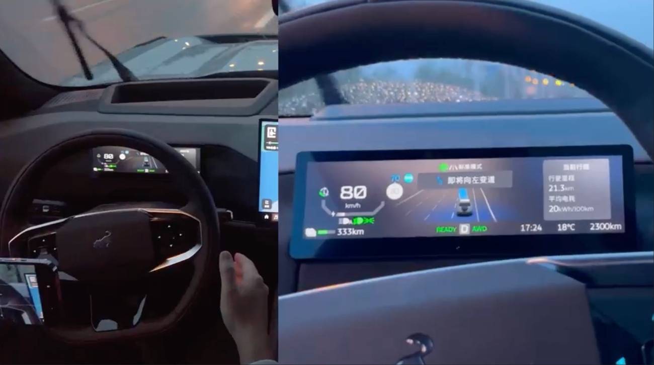 激光雷達與攝像頭的協同工作,在這個場景中發揮了關鍵作用。在經過高速維修路段是,系統還成功識別出了路面上擺放的警示牌等非標準障礙物,并主動減速發起避讓動作,關鍵時刻會提醒駕駛員注意接管車輛,并不會強行逞能嘗試風險通過。