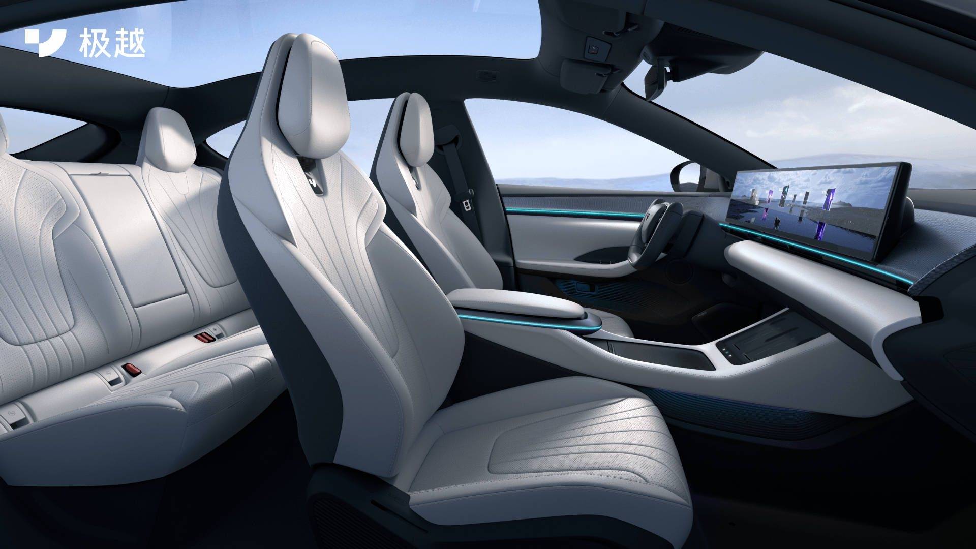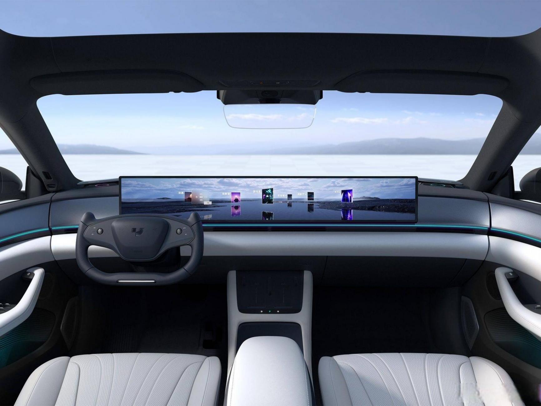 極越07的智駕系統(tǒng)搭載了兩顆英偉達Orin-X芯片,采用純視覺方案來跑城市智駕,也就是百度的Apollo智駕系統(tǒng)。采用第五代U型方向盤、35.6英寸的3D無界一體大屏,全系標配滿血版驍龍8295P車載智艙芯片。