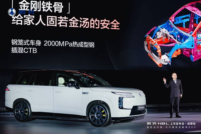 騰勢N8L以“金剛鐵骨”打造“超安全家庭大六座”,車身關鍵區(qū)域采用2000MPa的熱成型鋼,搭配混動CTB技術,即使是重達25噸的大貨車在側翻時壓頂也能承受,此外其配置9個安全氣囊,共同構建起家庭用戶堅實的移動堡壘。