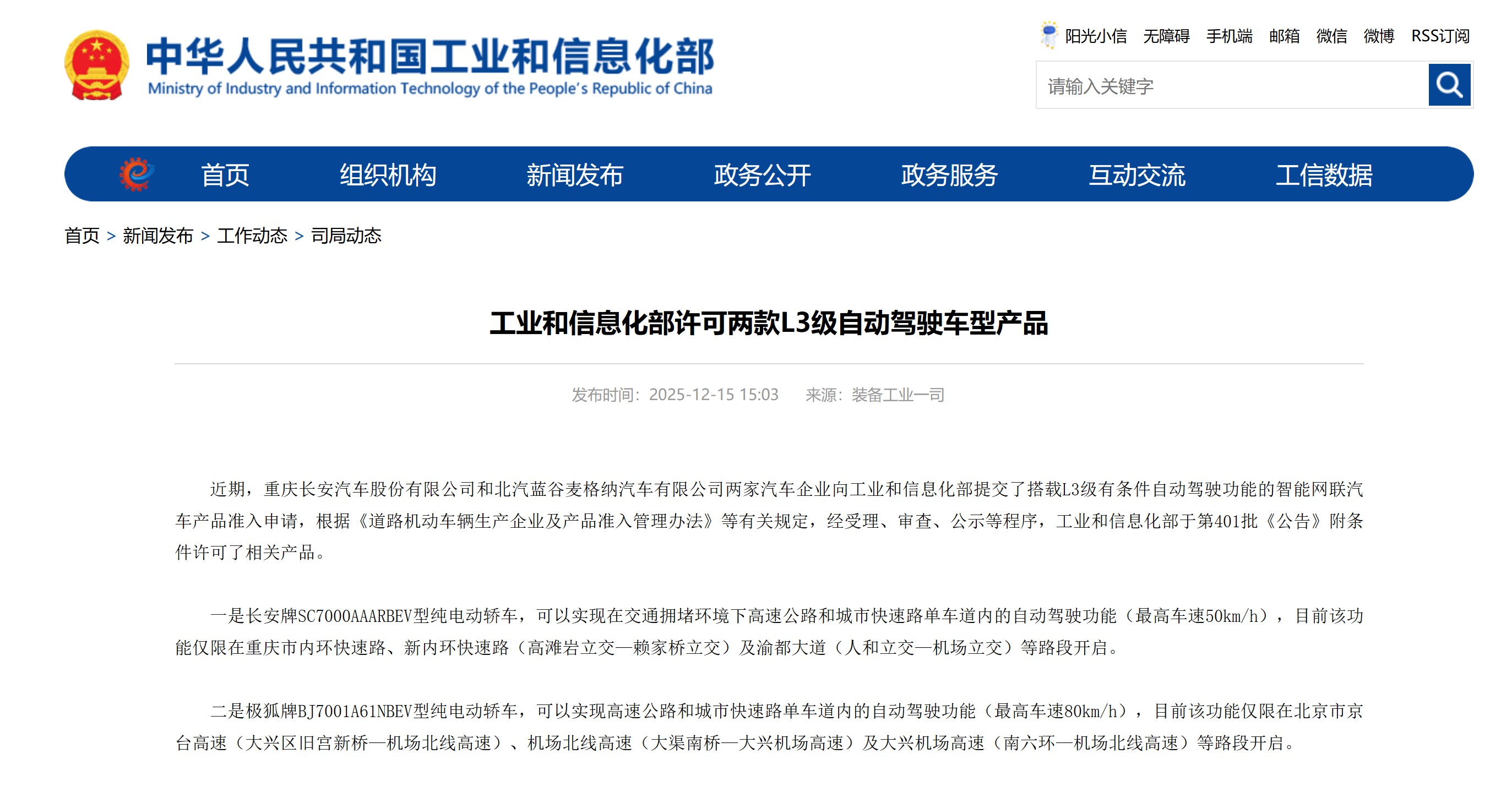 工業(yè)和信息化部于12月15日正式附條件許可了兩款L3級有條件自動駕駛車型產(chǎn)品準入,標志著我國智能網(wǎng)聯(lián)汽車從“技術(shù)驗證”邁入“量產(chǎn)應(yīng)用”新階段。