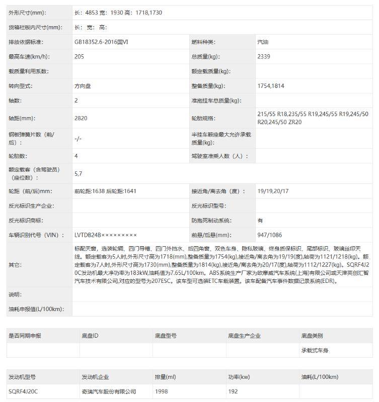動力部分,瑞虎5 PRO將搭載一具1.5T發動機,最大功率輸出115kW,配備規格為215/60R17的輪胎,極速可達180kph。