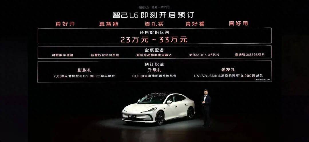 4月8日,智己L6預(yù)售發(fā)布會(huì)開啟,預(yù)售價(jià)23萬元-33萬元。